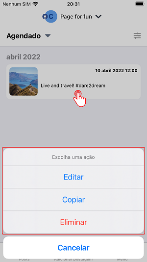 O menu também aparece ao clicar no post em qualquer uma dessas listas – Agendados, Publicados, Rascunhos e Erros: