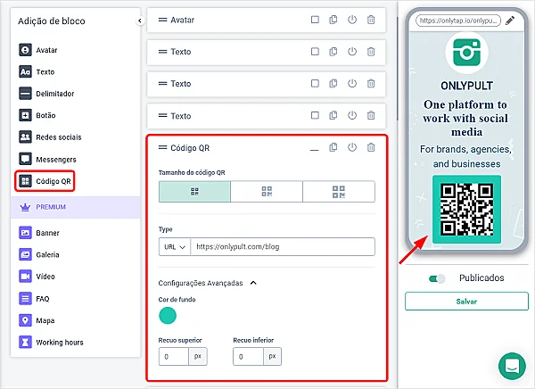 Use esse novo bloco grátis para adicionar um código QR à sua mini landing page.
