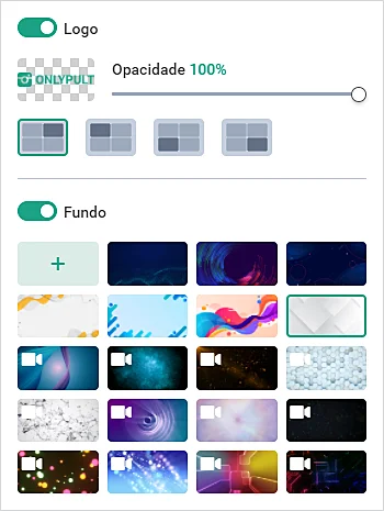 Personalize sua transmissão com um logotipo e adicione fundos predefinidos ou personalizados.