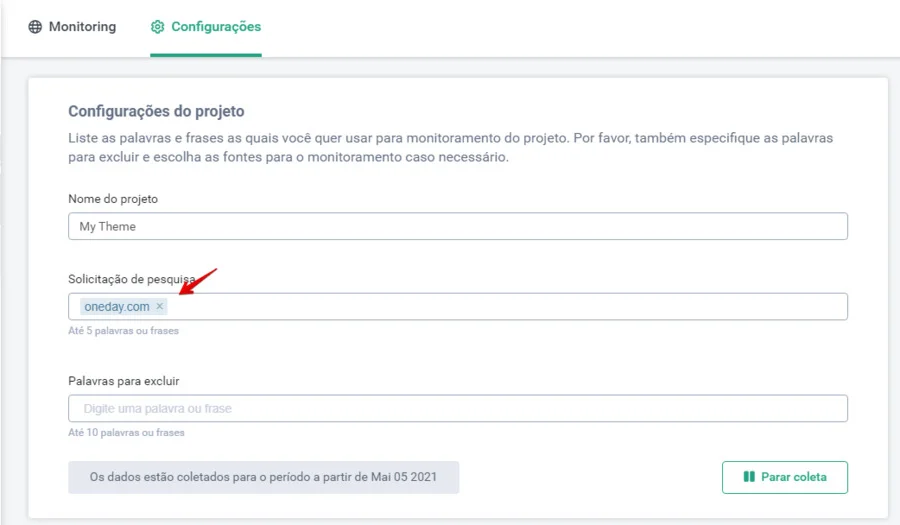 É possível adicionar consultas de pesquisa que incluem um ponto.