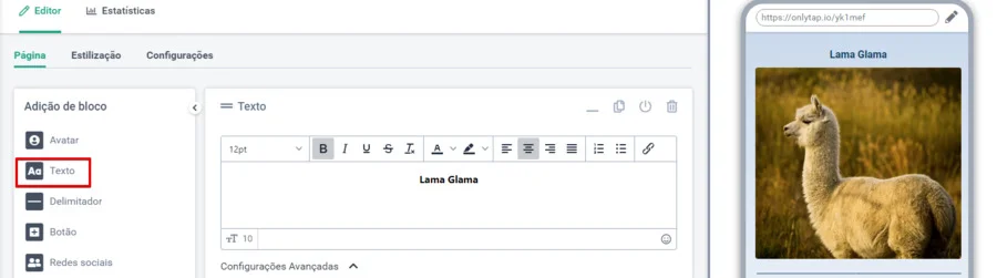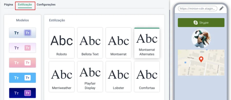 Você pode personalizar as fontes por estilo e cor para a página inteira. Escolha sua fonte favorita, estilo e cor para todo o texto e cabeçalhos.