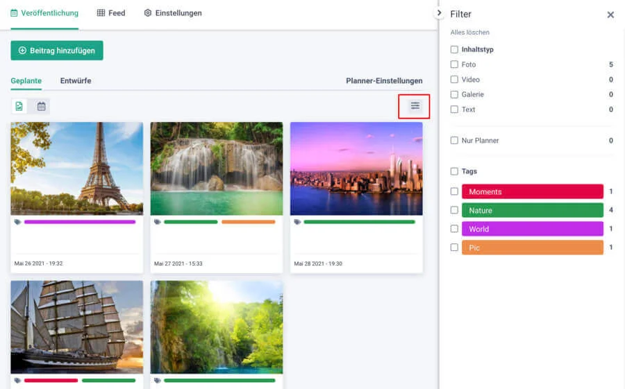 Você pode atribuir um ou mais etiquetas a cada post: nomeie-os e atribua uma cor. Dessa forma, é mais fácil navegar.
