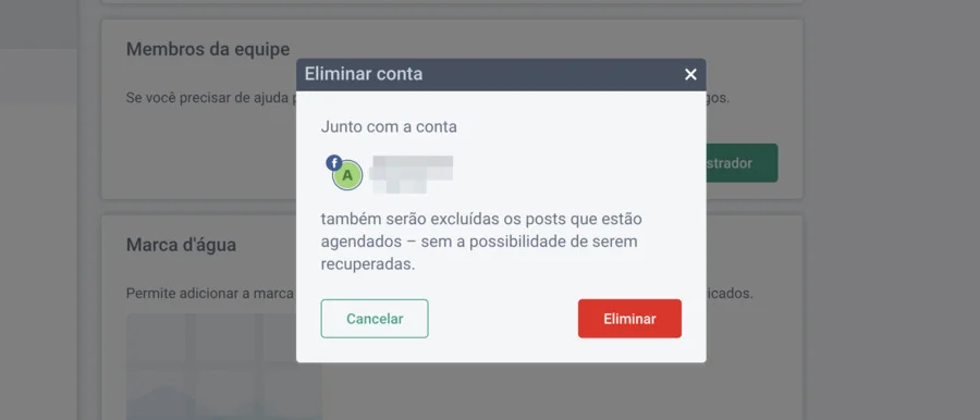 3. Pome do perfil na janela de eliminação da conta da rede social