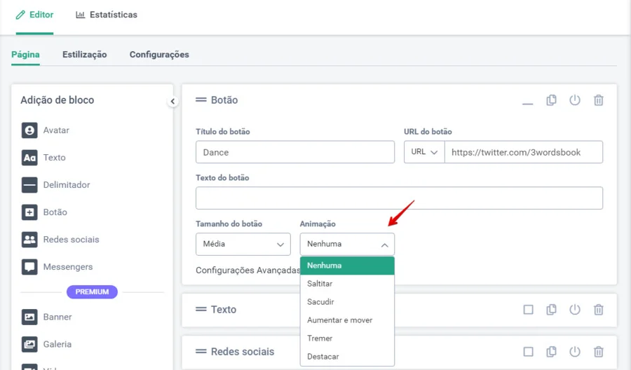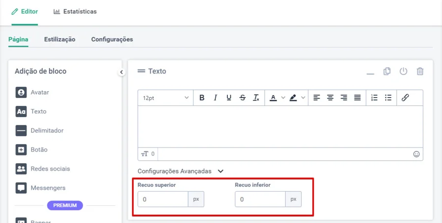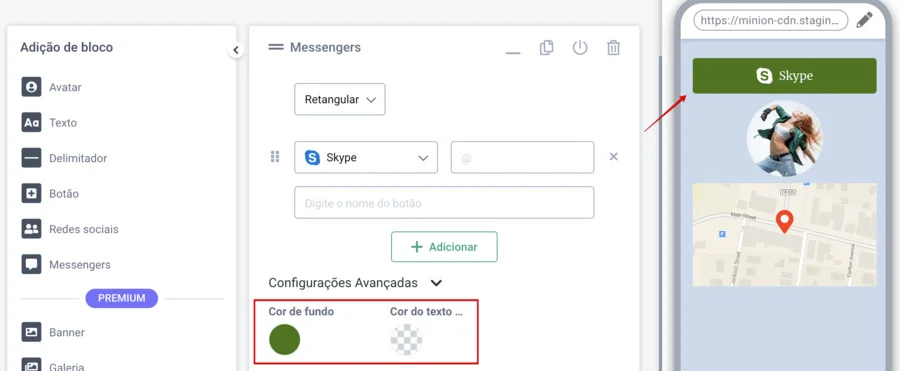 Você pode não apenas ajustar os recuos de cada bloco, mas também escolher um único estilo para botões e messengers de mídia social.