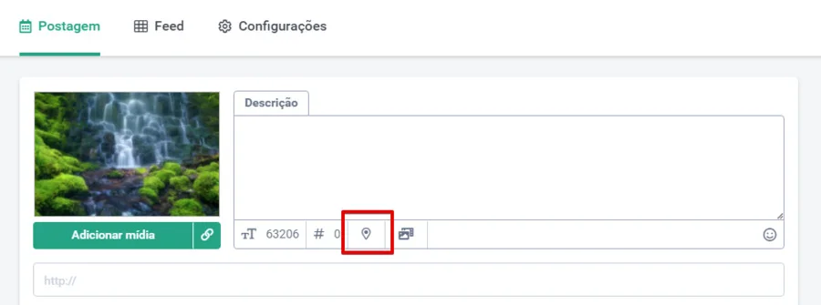 Clique no ícone de localização no formulário de pós-redação e selecione o local desejado.