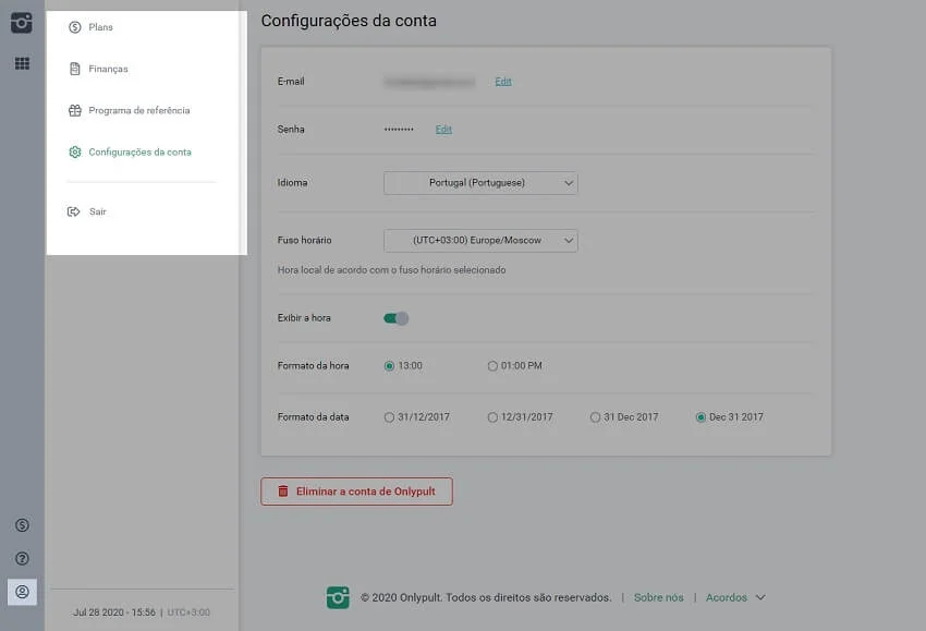 Agora, você pode acessar as menu de Configurações da Conta e seções úteis para trabalhar com nossa plataforma ao pressionar o botão