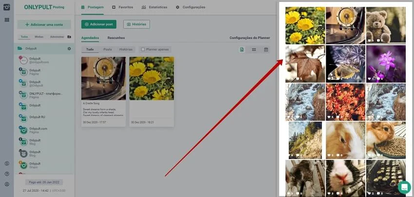 O novo painel do lado direito vai permitir que você veja de uma só vez posts agendados e publicados que compõem o feed.