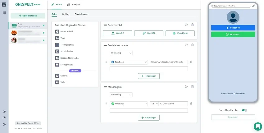 O menu do lado esquerdo irá aparecer com todas suas páginas criadas e agora você pode rapidamente alternar entre elas. Você também poderá ver quais delas estão publicadas e quais não estão.
