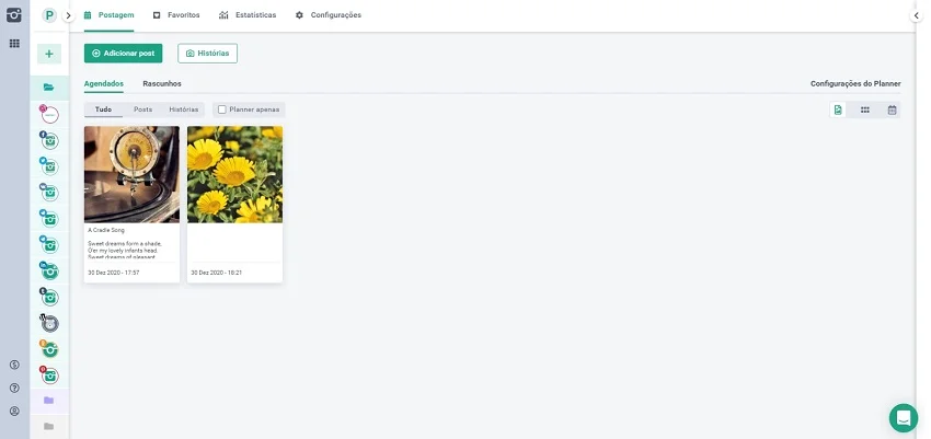 - Ações em massa com posts agendados. Selecione vários posts ao mesmo tempo para excluí-los ou movê-los para os Rascunhos.