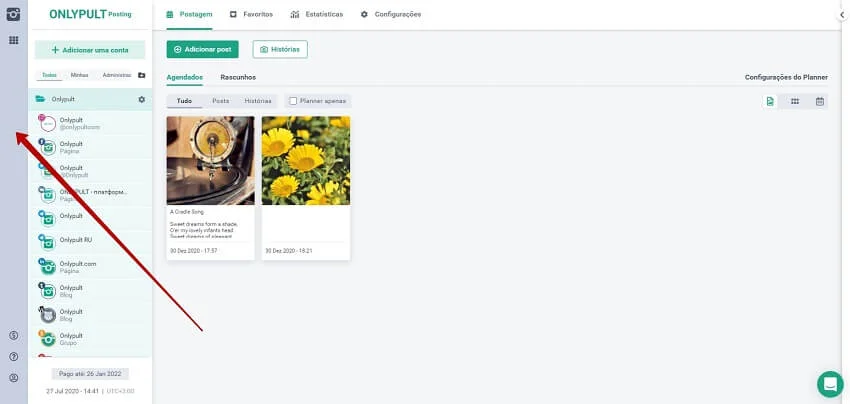 no canto superior esquerdo do painel, você poderá oculta-lo para obter mais espaço para trabalhar com posts.