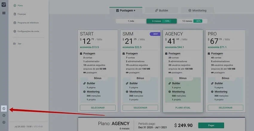A seção de Tarifas e Pagamentos agora também faz parte do menu de Configurações da Conta.