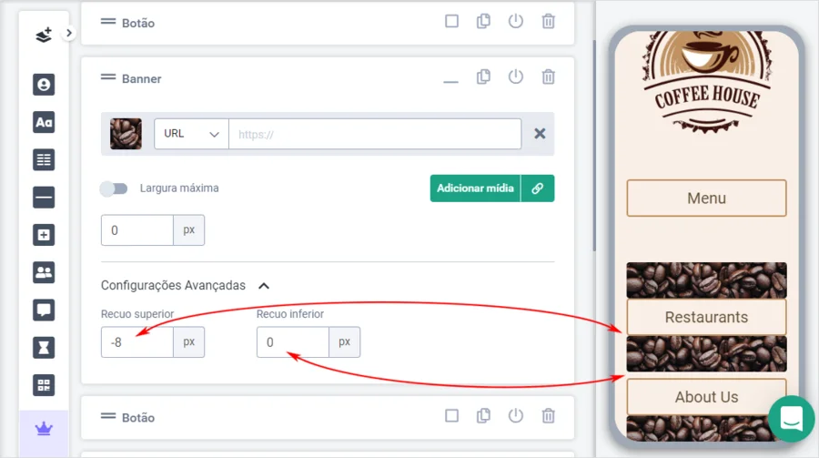 - Defina valores de recuo negativos para qualquer bloco para colocá-los mais próximos uns dos outros, fazendo com que pareçam visualmente unidos:
