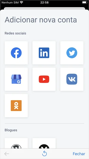 Redesenhamos completamente a lista de contas de redes sociais nesta nova versão do aplicativo móvel. Agora você pode abri-lo em uma nova tela tocando no nome da conta atualmente selecionada.