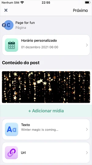 Também modificamos o formulário de post e alteramos seu algoritmo de UX. Dividimos o formulário em blocos de funcionalidades — agora, cada bloco está relacionado a uma função de postagem separada. Os blocos variam em funcionalidade dependendo da rede social.