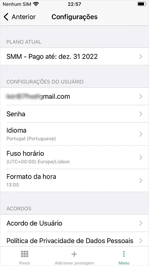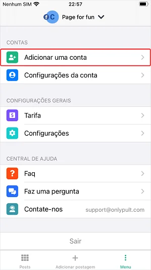 Você pode adicionar e eliminar suas contas de redes sociais diretamente no aplicativo móvel.