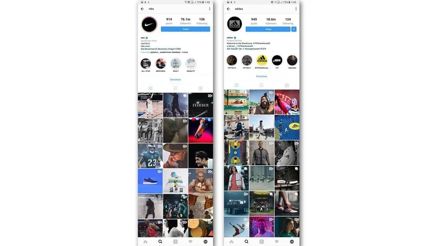 De acordo com os dados da pesquisa da Brand Networks, apenas no ano de 2016, a publicidade em vídeo se tornou 2 vezes mais popular: se antes ela correspondia a 30% da publicidade em geral, no inicio de 2017 ela já correspondia ao percentual 65%. Em algumas das contas mais populares, como por exemplo, a da Nike, o compartilhamento de postagens em vídeos chega a 80% do total. Outra marca esportiva, a Adidas, também gera conteúdo de qualidade em vídeo, sendo que o número de suas publicações em vídeo também supera o número de fotos.