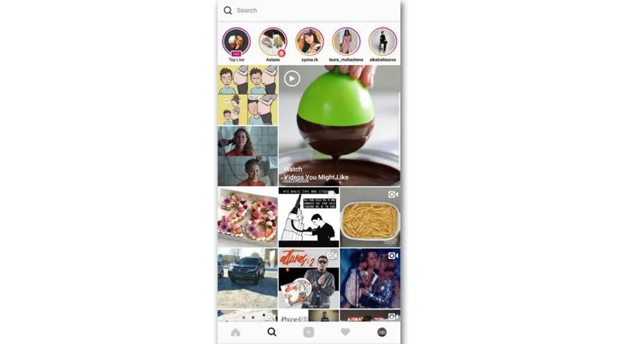 Se você abrir a seção “Pesquisar” do aplicativo, o Instagram oferecerá as postagens mais interessantes baseado nas suas atividades na rede social. Quase metade das postagens propostas são vídeos, e claro, convites discretos para assistir às transmissões mais populares do mundo ou da sua cidade: