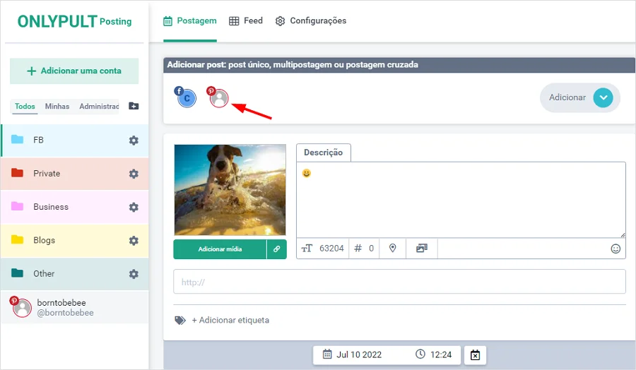 Faça login na sua conta do Pinterest que deseja adicionar ao Onlypult. Em seguida, clique em + Adicionar uma conta, selecione Pinterest e clique em Conceder acesso na janela que aparece. Isso é tudo! A conta foi adicionada.