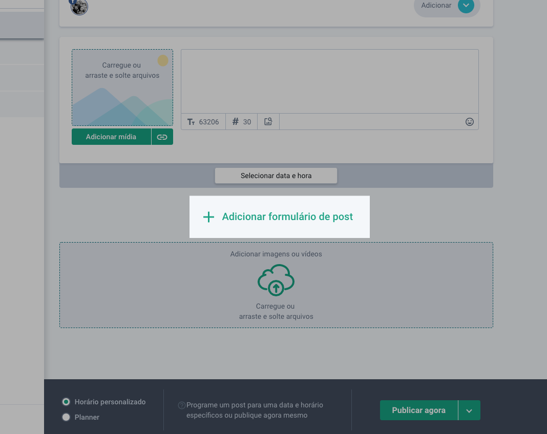 Pressione Adicionar postagem e então, o formulário unificado de postagem com o formulário de post único será exibido.