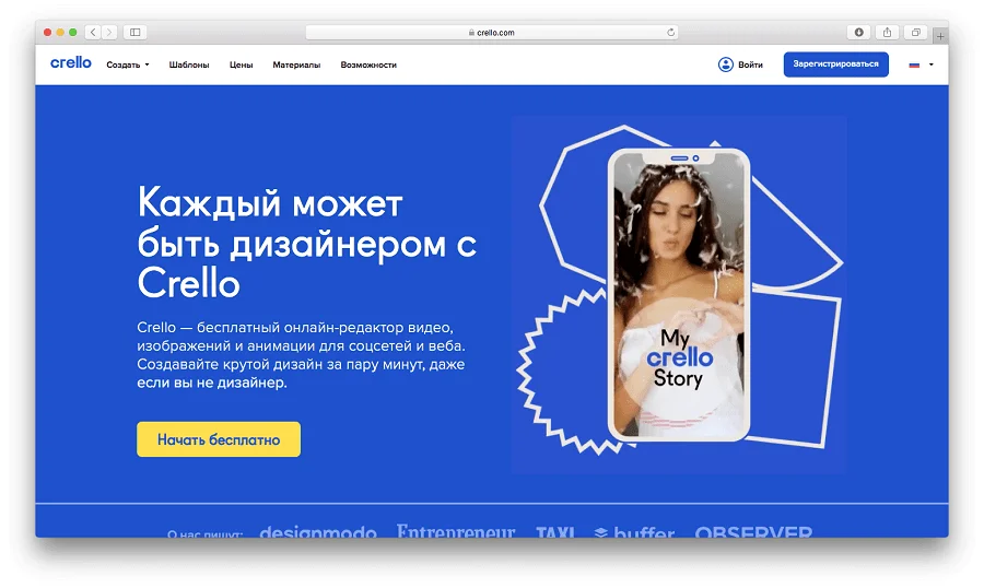 Функциональный онлайн-редактор для работы с изображениями и видео. С помощью сервиса можно создавать визуальный дизайн по шаблонам фото, видео, анимации.