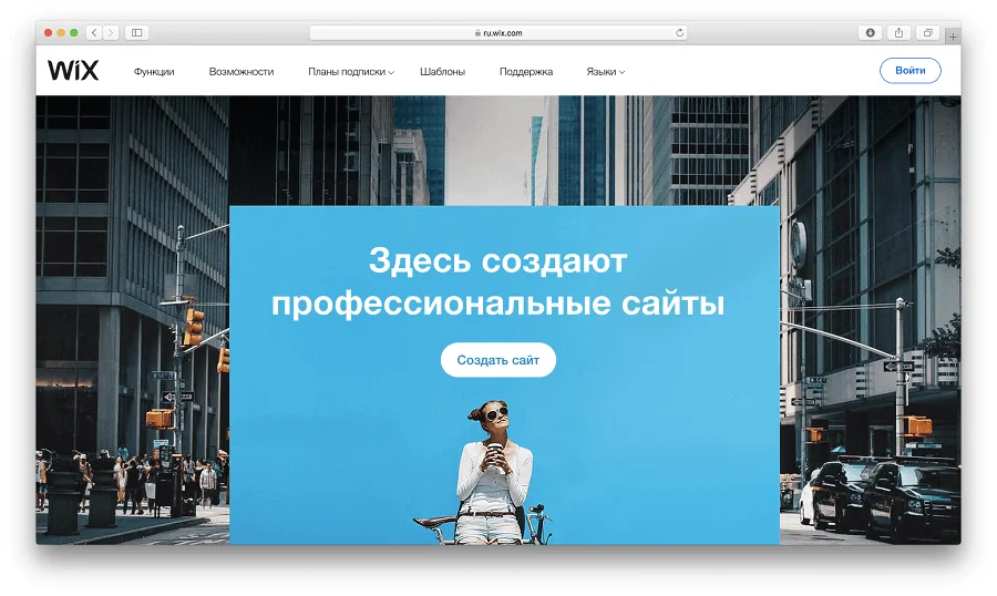 Помогает создать сайт с нуля самостоятельно или с помощью искусственного интеллекта WIX ADI, который работает на основе ответов пользователя и выдает готовое решение.