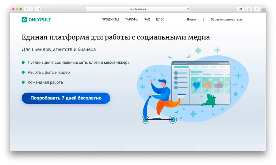Единая платформа для работы с соцмедиа для брендов, агентств и бизнесов. Позволяет оптимизировать время ведения площадок. После публикации постов легко отследить, насколько подписчики вовлечены в контент, и проанализировать результативность выбранной SMM-стратегии.