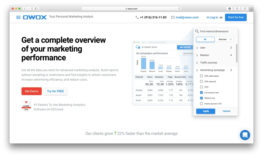 Сервис автоматически собирает в одном месте данные, которые важны для проведения маркетингового анализа и оценки результатов рекламных кампаний, что позволяет оптимизировать бюджет.