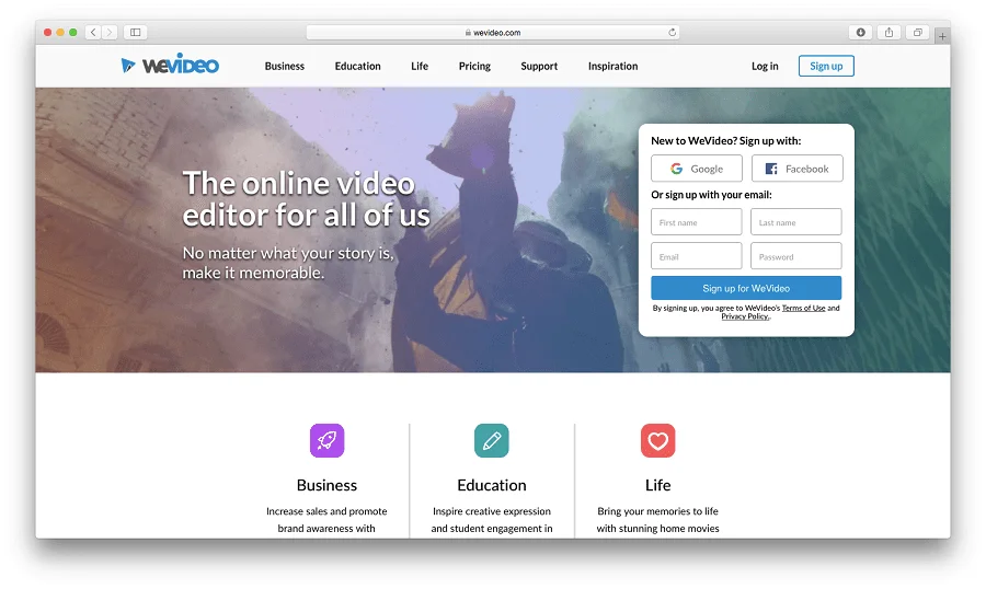 Приложение для создания и обработки видео в онлайн-режиме. Его разработчики считают: любую историю можно сделать запоминающейся. Сервис доступен и в браузерах, и на мобильном устройстве.