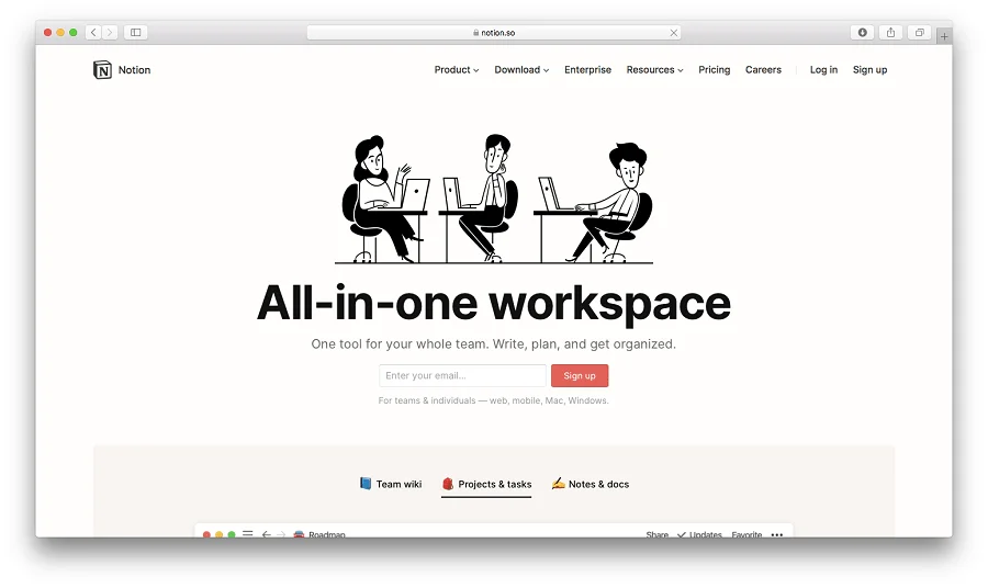 Сервис управления проектами с большим функционалом. Решает максимальное количество задач. Не потребуются Google Doc, Evernote, Trello. Можно писать заметки, вести трекеры, списки.