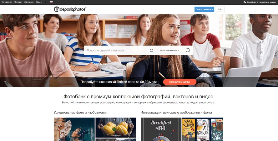 Одним из самых популярных международных фотостоков является Depositphotos. Ресурс предоставляет возможность приобретения изображений по лицензии Royalty-free и содержит более 100 млн изображений.