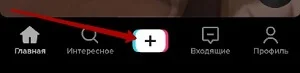 - Нажмите на кнопку с изображением плюса внизу экрана. Это кнопка добавления видео. Если у вас больше 1000 подписчиков здесь появляется функция проведения прямого эфира — Live.