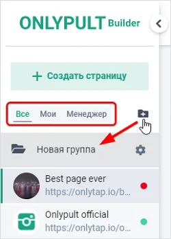 Теперь вы можете группировать страницы в Конструкторе по папкам и применять к ним фильтры “Все”, “Мои”, “Менеджер” - так же, как это заведено с добавленными профилями в Публикации и с темами в Мониторинге.