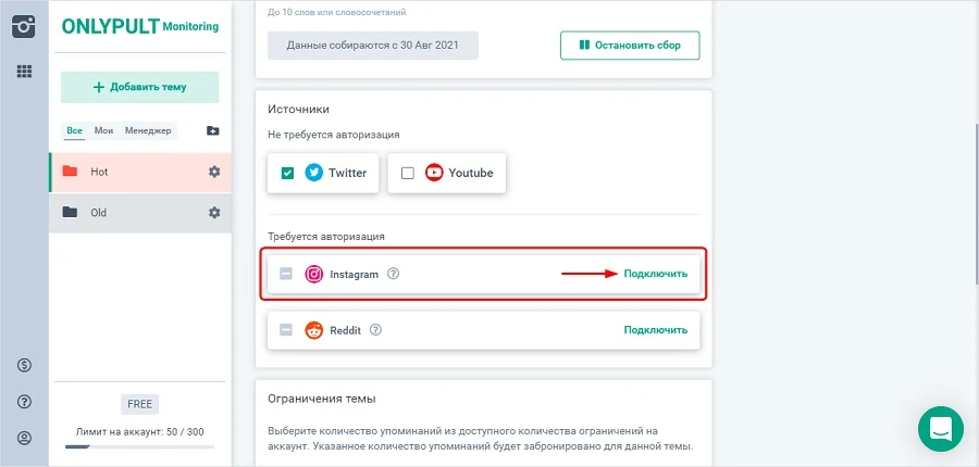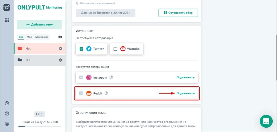В связи с тем, что у Reddit изменились некоторые правила, для отслеживания упоминаний по этой соцсети вам теперь потребуется там авторизоваться.