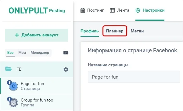 Мы переместили настройки Планнера в настройки добавленного профиля. Пусть они будут в одном месте - так ведь и логичней, и удобней.