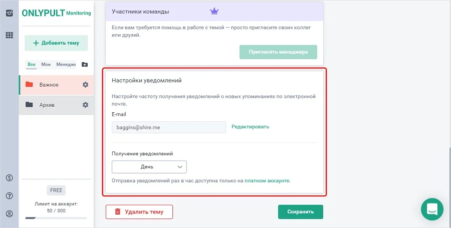 * Получение уведомлений каждый час доступно только на платном тарифе.