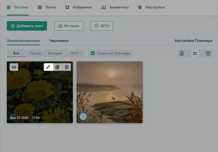 - Можно изменять расположение и очередность постов, если вы хотите улучшить общий вид, получить более целостную картинку, изменить время постинга и пр.