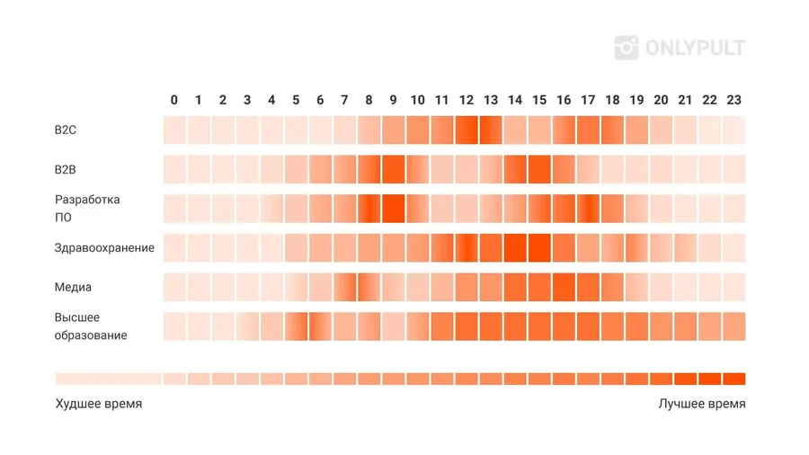Лучшее время для публикации постов в Facebook* в зависимости от вида деятельности компании