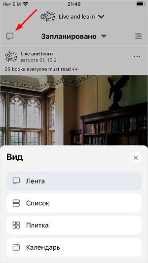 Вы можете настроить вид в любом списке постов (“Запланировано”, “Прошедшие”, “Черновики”).
