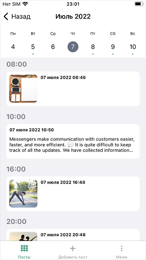 Чтобы просмотреть все запланированные на данную дату посты, нажмите на ее ячейку. При этом вы перейдете в масштаб недели: