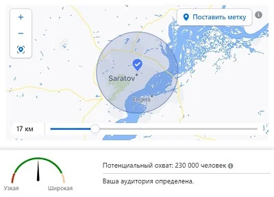 - Предположим, что клиент – кофейня, которая находится в городе Саратов. Первое, что нам нужно, — это выбрать город Саратов. Мы выбираем именно тех, кто живет здесь. Пока будем настраивать рекламу на местных жителей. Если захотим сделать ее на тех, кто приезжает, можем выбрать путешественников.
