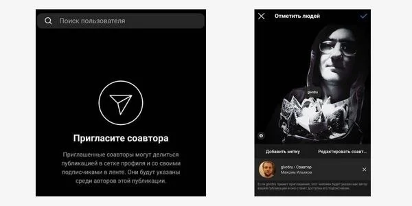 Для того, чтобы воспользоваться функцией, нужно отметить нужный профиль на публикации и нажать на кнопку “Пригласить соавтора”. После того, как другой участник согласится с совместным размещением поста, алгоритм выбирает, кто из подписчиков увидит “коллаб”.