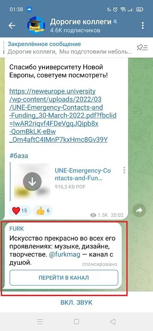 Осенью Телеграм начал тестировать размещение рекламы в каналах. Рекламные сообщения выделяются отдельно и помечаются как спонсированные. При этом влиять на контент владельцы каналов не могут.