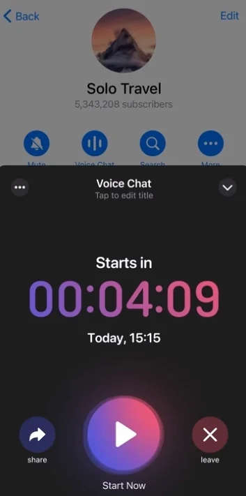 После выставления отложенного созвона члены вашей группы смогут увидеть цветной таймер вверху чата. Он будет показывать, сколько времени осталось до мероприятия. Заинтересовавшиеся смогут подписаться на уведомление о начале созвона, и это отчасти решит проблему долгого сбора на встречу.