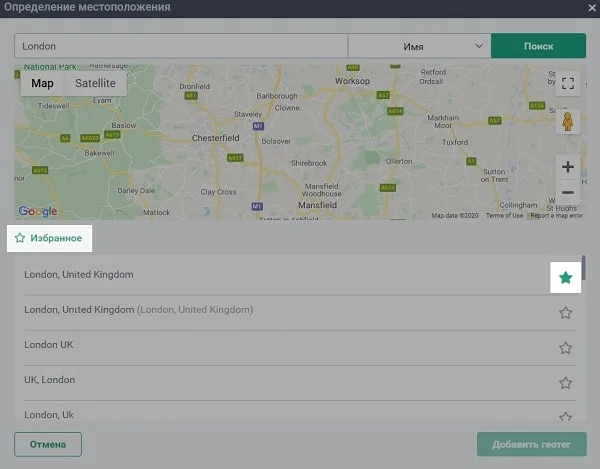 Добавлена возможность добавлять геотеги в “Избранное”. Для этого нужно ввести локацию в поиск и отметить “звездочку”, чтобы добавить геотег в список.