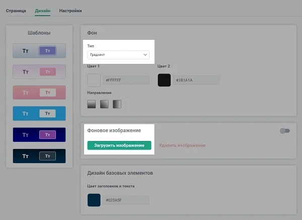 Загружайте на вашу страницу фоновое изображение или выстраивайте градиент в цветах вашего бренда - все это теперь доступно в Конструкторе.