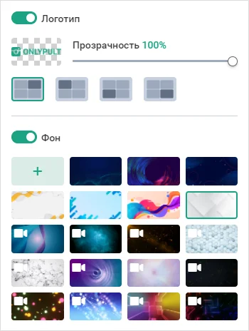 В окне трансляции вы можете разместить ваш логотип, а также выбрать или загрузить фон для индивидуального оформления эфира.