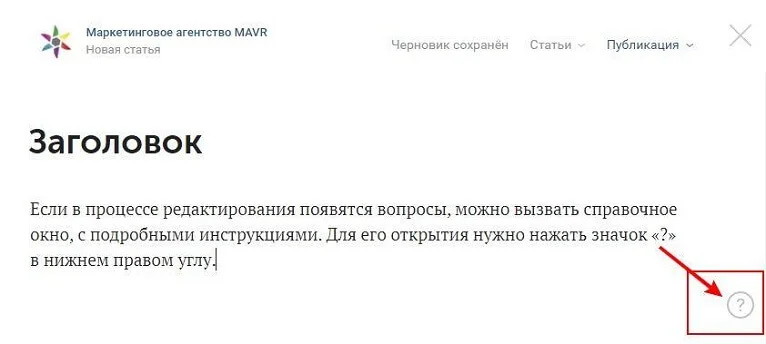 Если в процессе редактирования появятся вопросы, можно вызвать справочное окно с подробными инструкциями. Для его открытия нужно нажать значок «?» в нижнем правом углу.