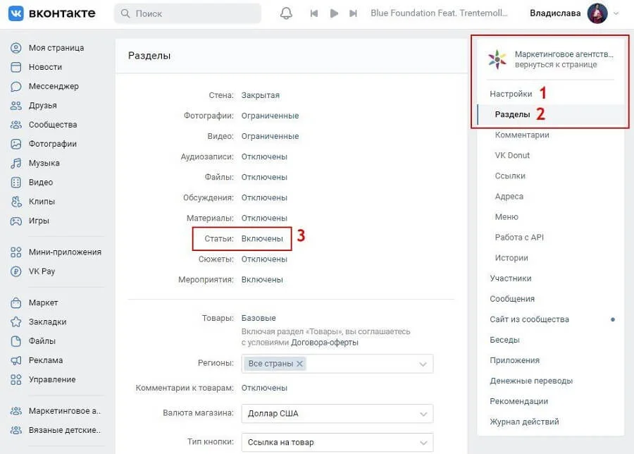 Перед началом работы включите отображение статей на странице сообщества. Это упростит для подписчиков чтение материала. Все опубликованные тексты отображаются справа, под разделом «Участники», и не потеряются в новостной ленте.