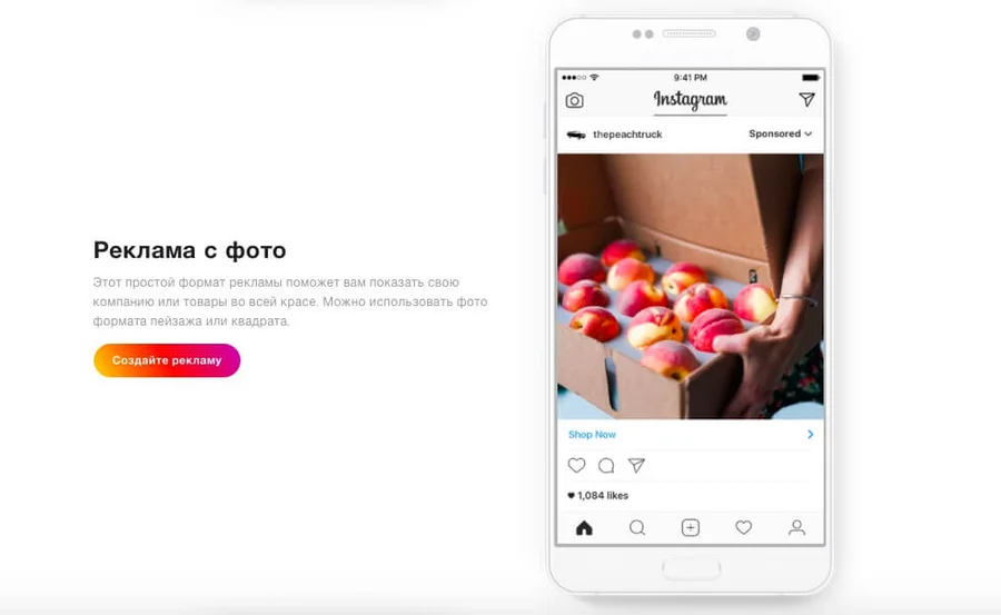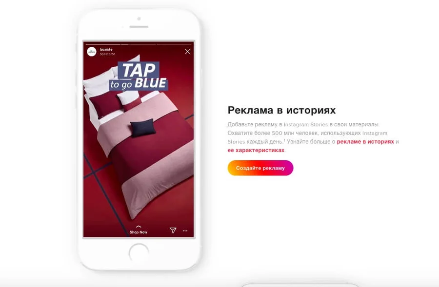 Инстаграм позволяет бизнес-аккаунте запустить рекламу внутри приложения, без необходимости открывать веб-версию рекламного кабинета Фейсбук.