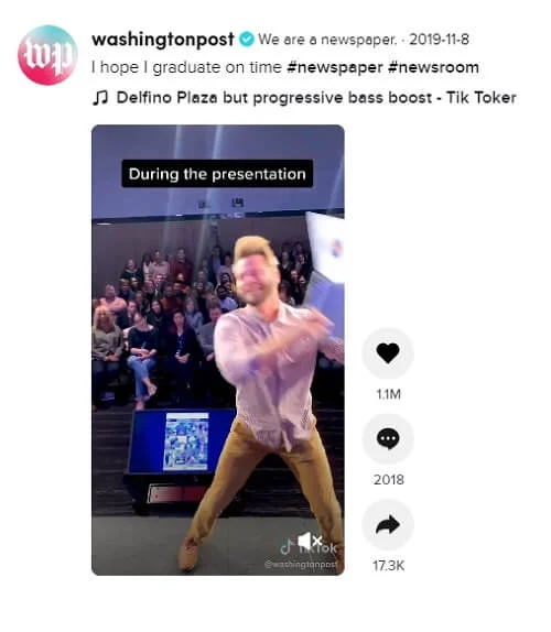 Но некоторые компании смогли адаптироваться, и бренды с солидной репутацией экспериментируют с форматами и фактически создают в TikTok менее серьезный суббренд. Например в канале Washington Post вы не найдете прямого отражения большинства новостей в их привычной тональности, вместо этого ведущий Дэйв Йоргенсон создает комедийные скетчи и вирусные видео, собирающие миллионы просмотров.
